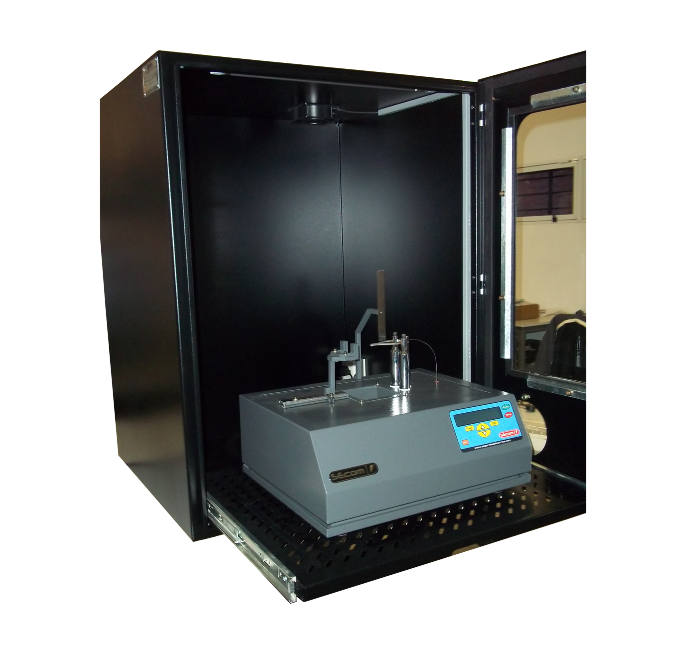Dispositivo diseñado y desarrollado para ser utilizado en conjunto con el equipo de ensayos de Filamento Incandescente o el dispositivo Quemador Bunsen / Quemador de Aguja.