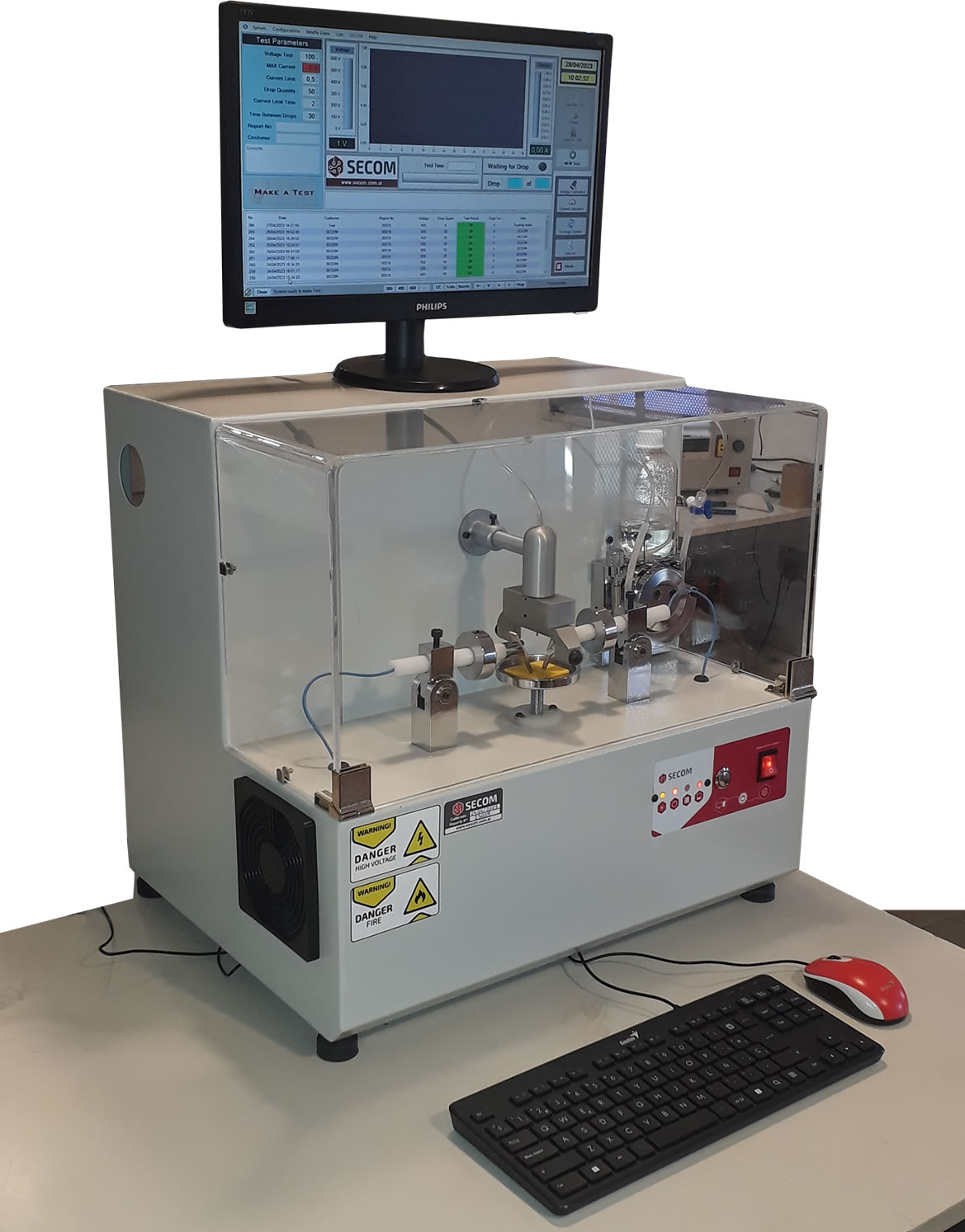 Este equipo se utiliza para el ensayo de encaminamiento eléctrico de materiales aislantes en condiciones húmedas (IEC 60112). Se encuentra diseñado y fabricado con el objeto de determinar el cumplimiento de distintas normas ( IEC 60335, IEC 60065, IEC 60745, IEC 61029, etc. ) en cuanto al requisito de acuerdo a los requisitos de las distintas certificadoras mundiales UL, DNV, IMQ, BVSQ, ITS, IRAM , CSA, VDE, DIN , INMETRO, etc.