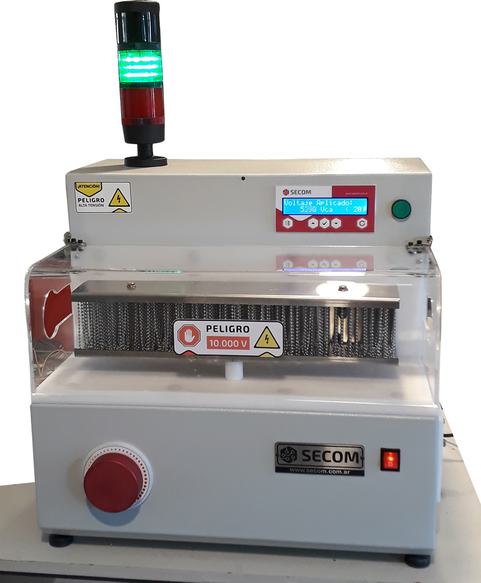 El equipo Spark Test (Spark Tester) se encuentra diseñado para realizar el ensayo de tensión en seco entre electrodos (spark test), para verificar la aislación de conductores eléctricos durante el proceso de fabricación, o en fases posteriores de producción, del 100% de la producción.