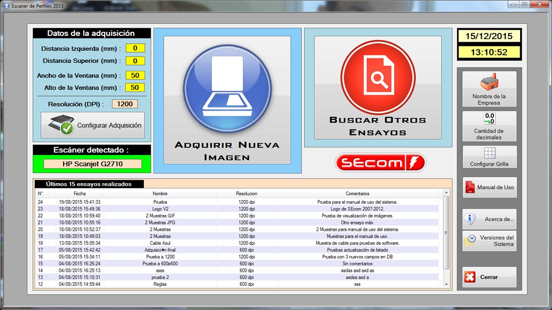 El software Escáner de Perfiles permite la adquisición, procesamiento, análisis y visualización de imágenes de pequeñas dimensiones.